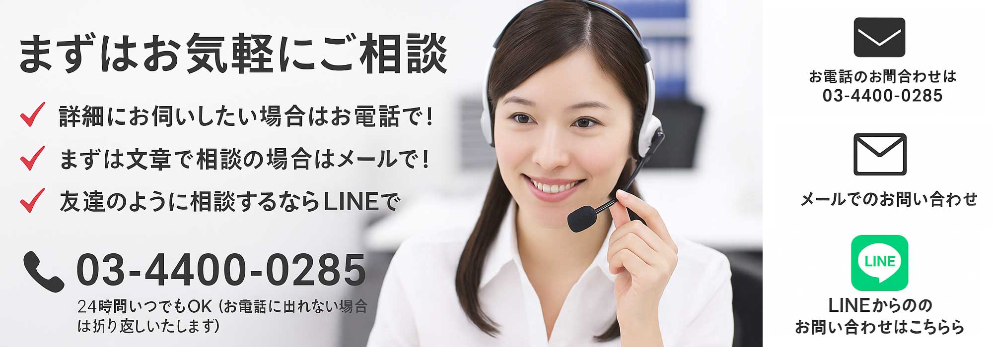 お電話以外にも、メールフォーム・ラインよりお気軽にご連絡ください。